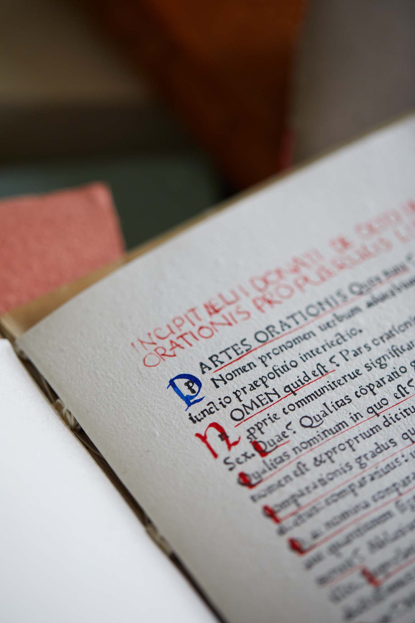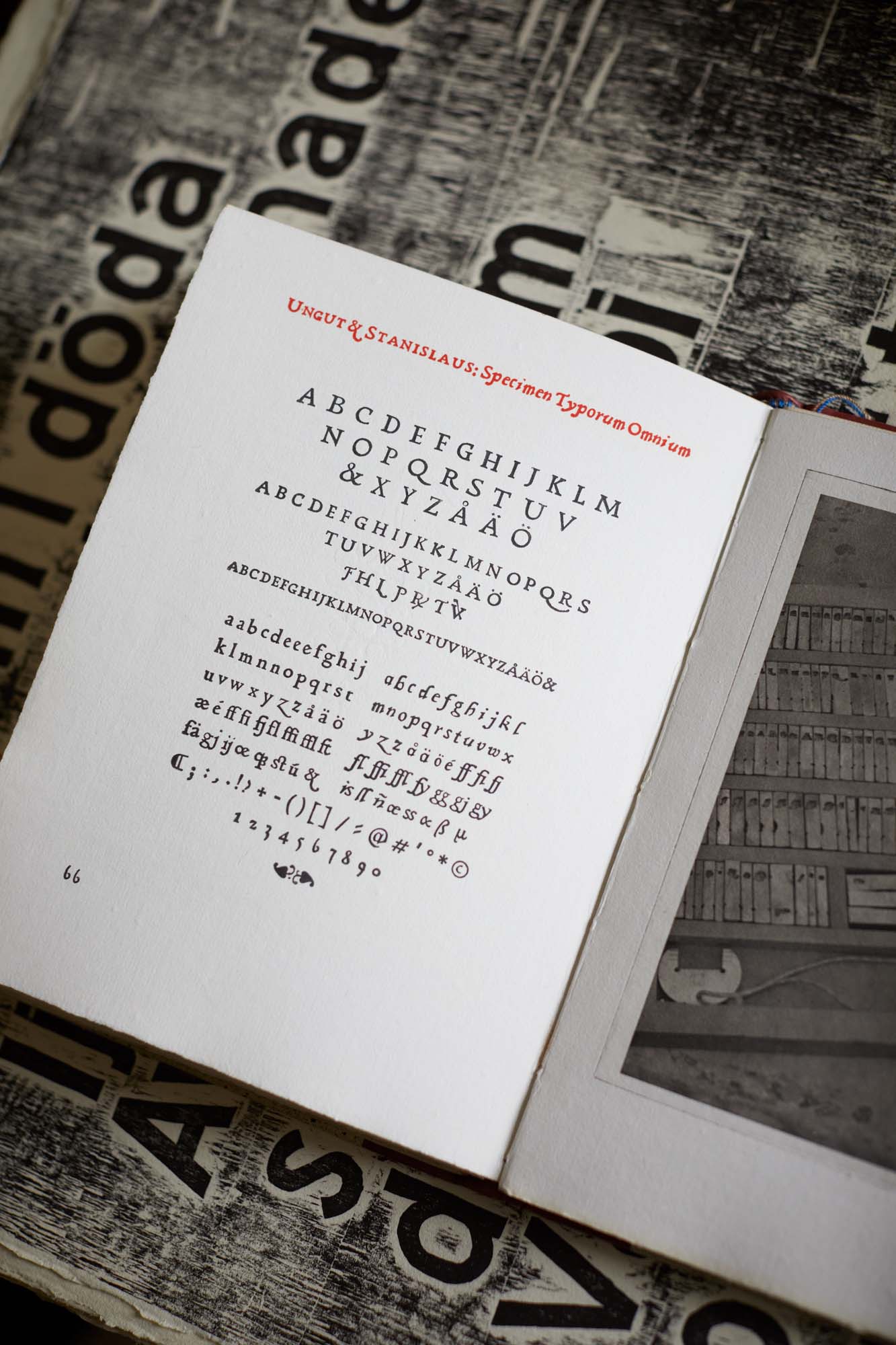 Richard Årlins papper är snövita och ytan har en textur från pappersformens metallnät. Men blott papper gör ingen bok. När hundratalet ark är klara börjar nästa moment på den långa vägen mot färdigt verk. Texten ska tryckas och då är det dags att välja teckensnitt, alltså hur bokstäverna ska se ut.