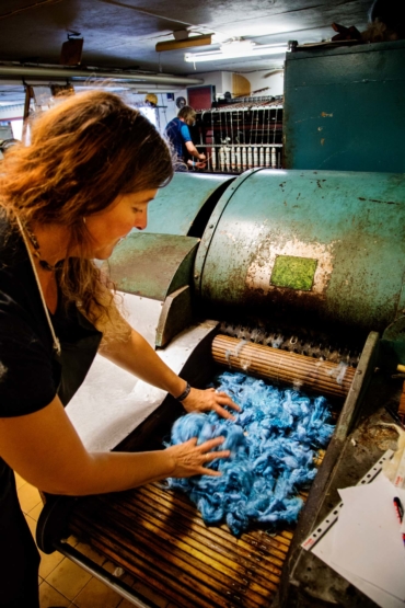 – Vi kan göra allt, säger Sonia anspråkslöst. Vi både färgar och spinner och kan skapa helt unika kvaliteter eftersom vi vet hur vi ska blanda olika sorters ull för att få just de egenskaper som folk vill ha på sitt garn.