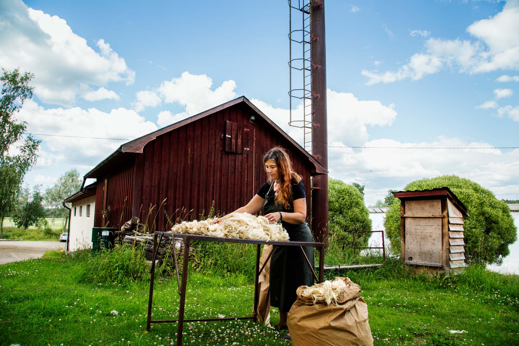 De återkommer till det där flera gånger, att de aldrig fick tillräckligt med inskolningstid. Att de fått lära sig själva och att det varit väldigt tufft stundtals. Och fortfarande är. Två av deras söner har börjat jobba i spinneriet, annars skulle de aldrig hinna med. Arbetet består av att klassificera ull, tvätta, färga och spinna. Men att jobba med svensk ull innebär stora utmaningar.