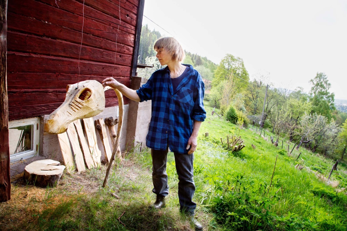 Simmande kvigor, långbenta kalvar och magra koskrällen. Inga Hjohlman har jobbat i ladugård i över trettio år nu. Det syns när hon tar till yxan. Möt skulptören som känner igen sig i både trä och fä.