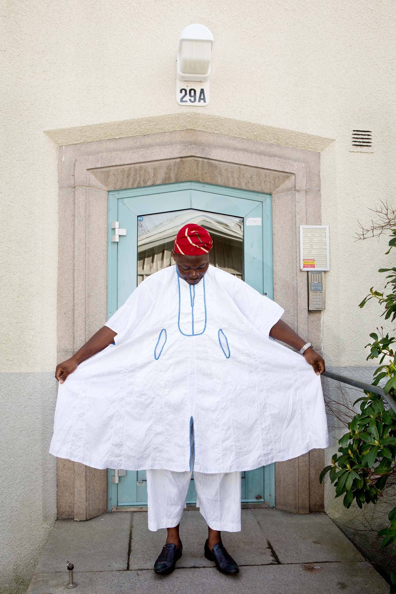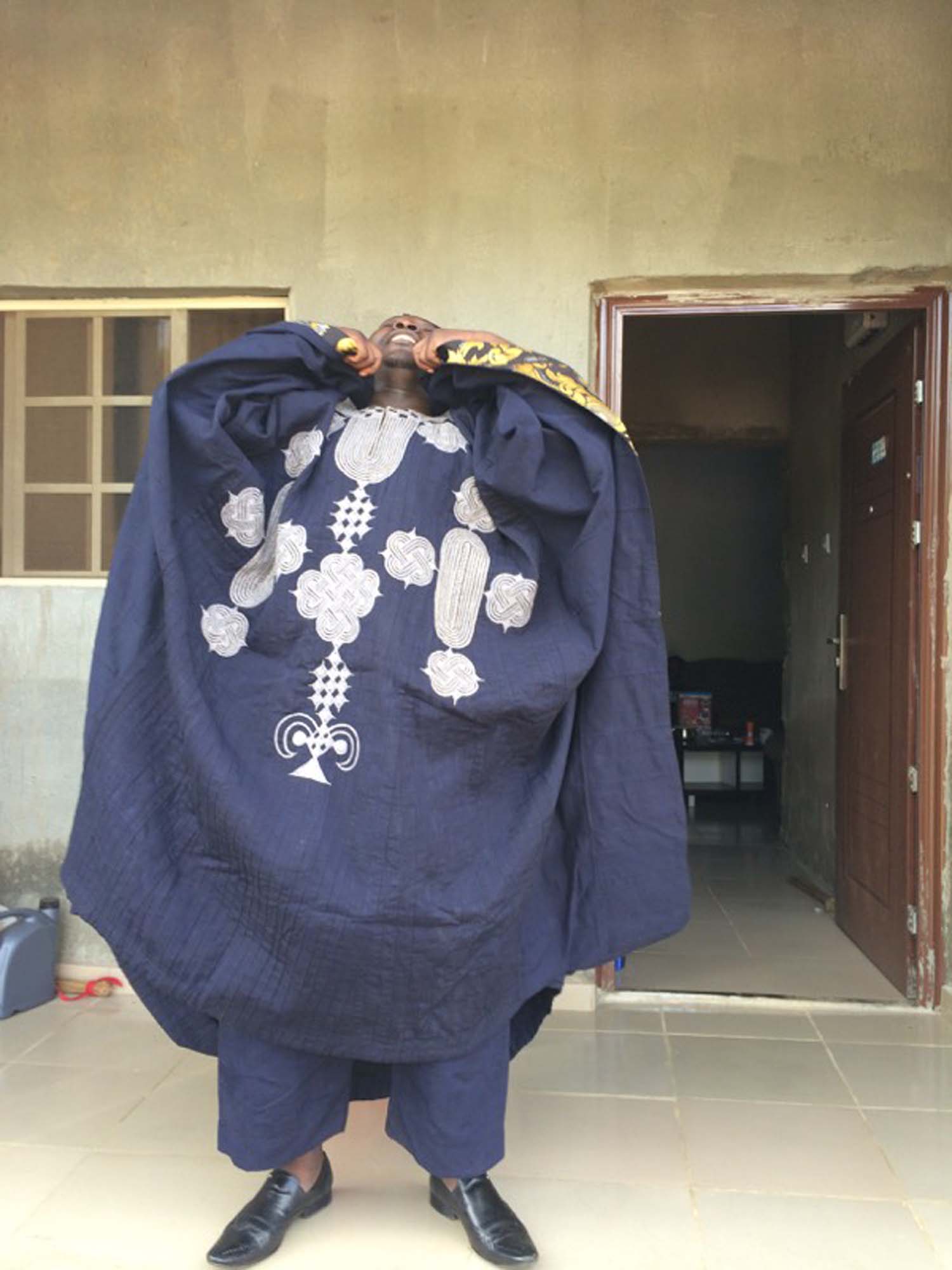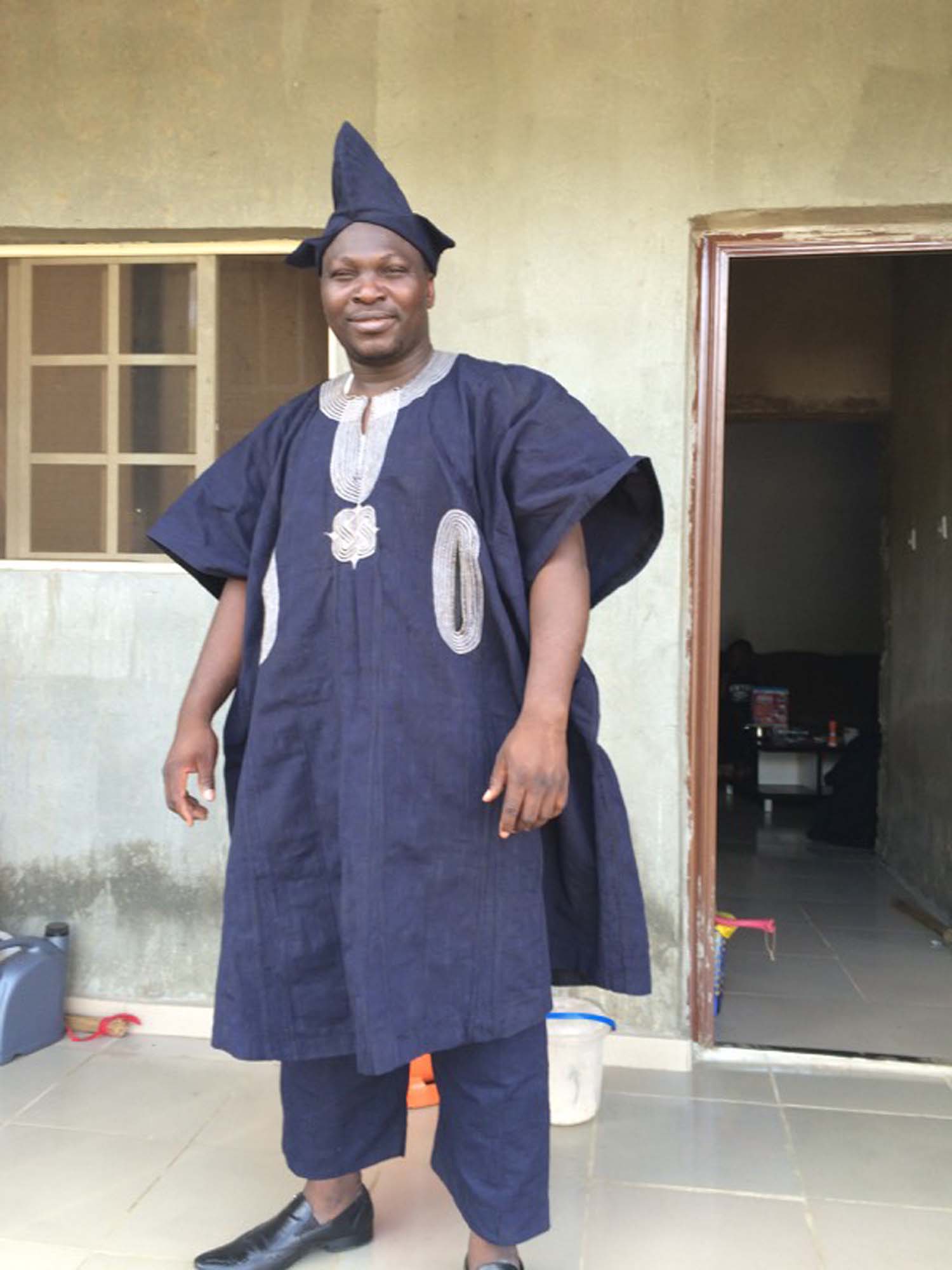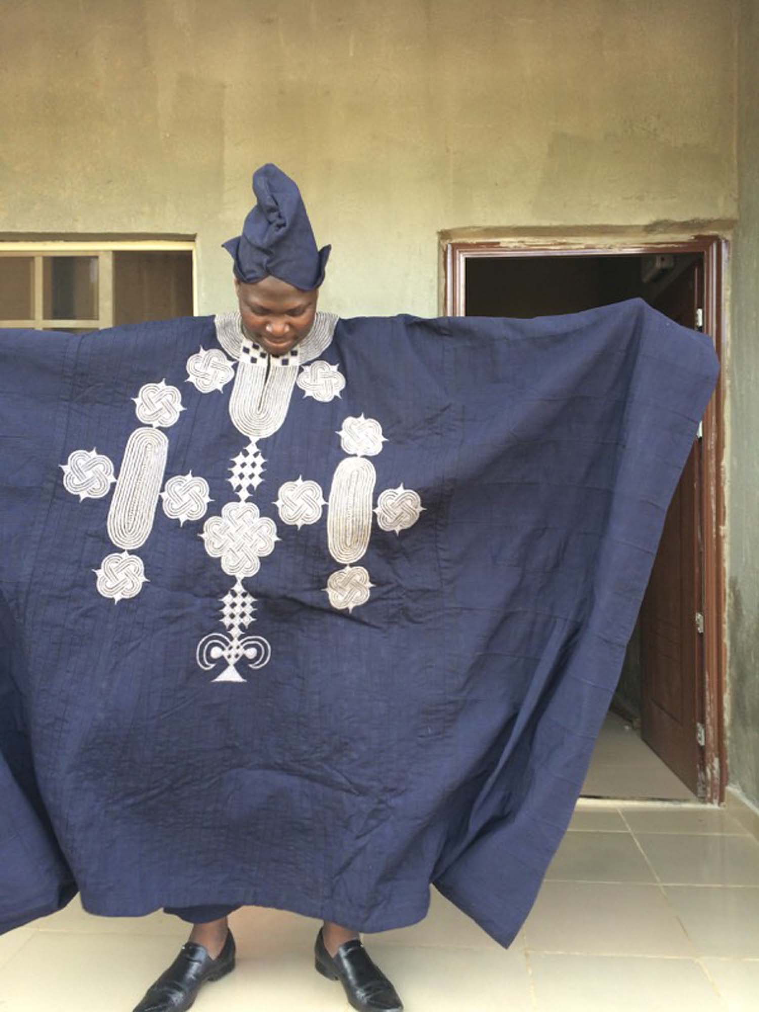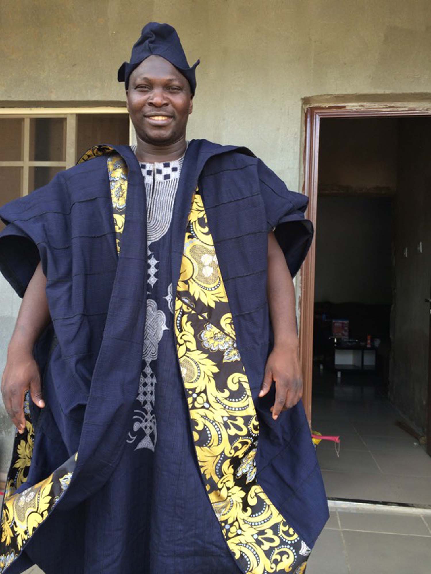 Vi tillhör folkgruppen Yoruba, en av de största i Nigeria. Hos oss finns en väldigt stark dräkttradition. Googla på aso oke så får du se. Antika aso oke-kläder säljs för tio-tusentals kronor på nätet och fortfarande finns män som min far, som tillverkar nya efter konstens alla regler. Vi använder vävda bomullstyger i fyra olika färger som vi broderar på.