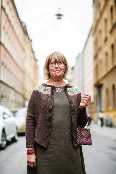 Dekorationerna kan vara vad som helst: tofsar, plattsömsprickar, knutar… Jag tycker om att testa mig fram förutsättningslöst. Vad händer om man gör ett större galler eller byter ut materialet? Jag testade att virka en rad luftmaskor som jag sedan använde som galler. Jag använde en grövre nål, och sedan var det lite pill med att få det på plats eftersom jag gärna ville ha den räta sidan uppåt. Men det var helt klart värt besväret. Gallret stod ut mer och gav broderiet en tredimensionell effekt, och det var precis vad jag ville. Jag tycker om när ett mönster känns under fingrarna.