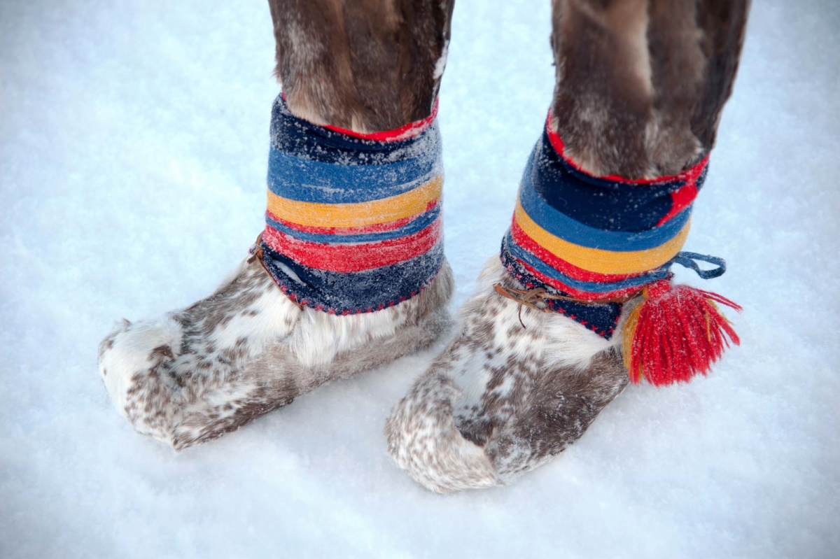 – Bällingskor till exempel, syr jag för hand. Skinnet från renens ben, bällingarna, är så tjockt. Pälsmössorna syr jag både för hand och med maskin. Jag använder både sticksöm, pälssöm, kastsöm och plattsöm för att det ska bli så hållbart som möjligt. Kläderna syr jag på symaskin, om jag inte jobbar med renkalvsskinn, som är ömtåligt. Då syr jag för hand. Jag laborerar med applikationer i sticksöm, efterstygn och franska knutar och använder gärna glittrigt garn. Ibland har jag en följesena i sömmen som ger ett vågigt, dekorativt mönster.