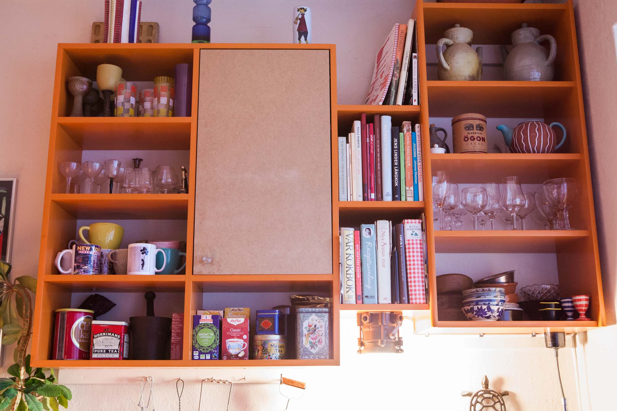 – Andra kanske utgår från en färdig plan, en idealbild av hur de vill ha sitt kök. Det har inte vi gjort alls. Allt har fått uppstå efterhand: Vi behöver en hylla! Okej, här finns en bräda som skulle kunna funka. Då kör vi på det. Och funkar det inte kan vi ju bara ändra.