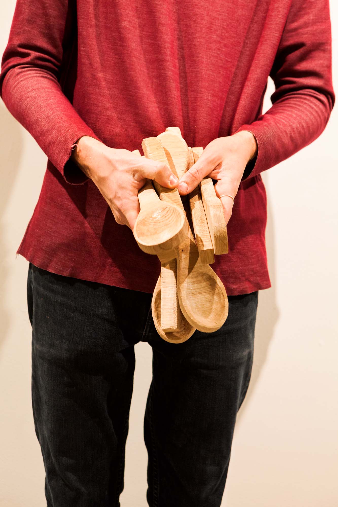 – Jag vet aldrig vad nånting ska bli från början. Mycket växer fram i görandet. Själva rörelsen när jag karvar ut en slev kanske får mig att tänka på skålar och så slår jag in på det spåret istället. Men nånstans tänker jag alltid på bruksföremål, säger han.