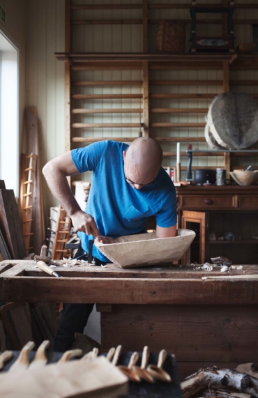 – Men ser vi någon tälja en sked så vet vi inte längre vad det är. Inför händer, kniv och en enda människa blir vi plötsligt otrygga, osäkra, och det är ingen bra grogrund för att man ska ta fram plånboken. Det måste man förhålla sig till som slöjdare: Idag är vi så ovana vid att uppleva tillverkningsprocessen att vi inte förstår vad det är vi ser.