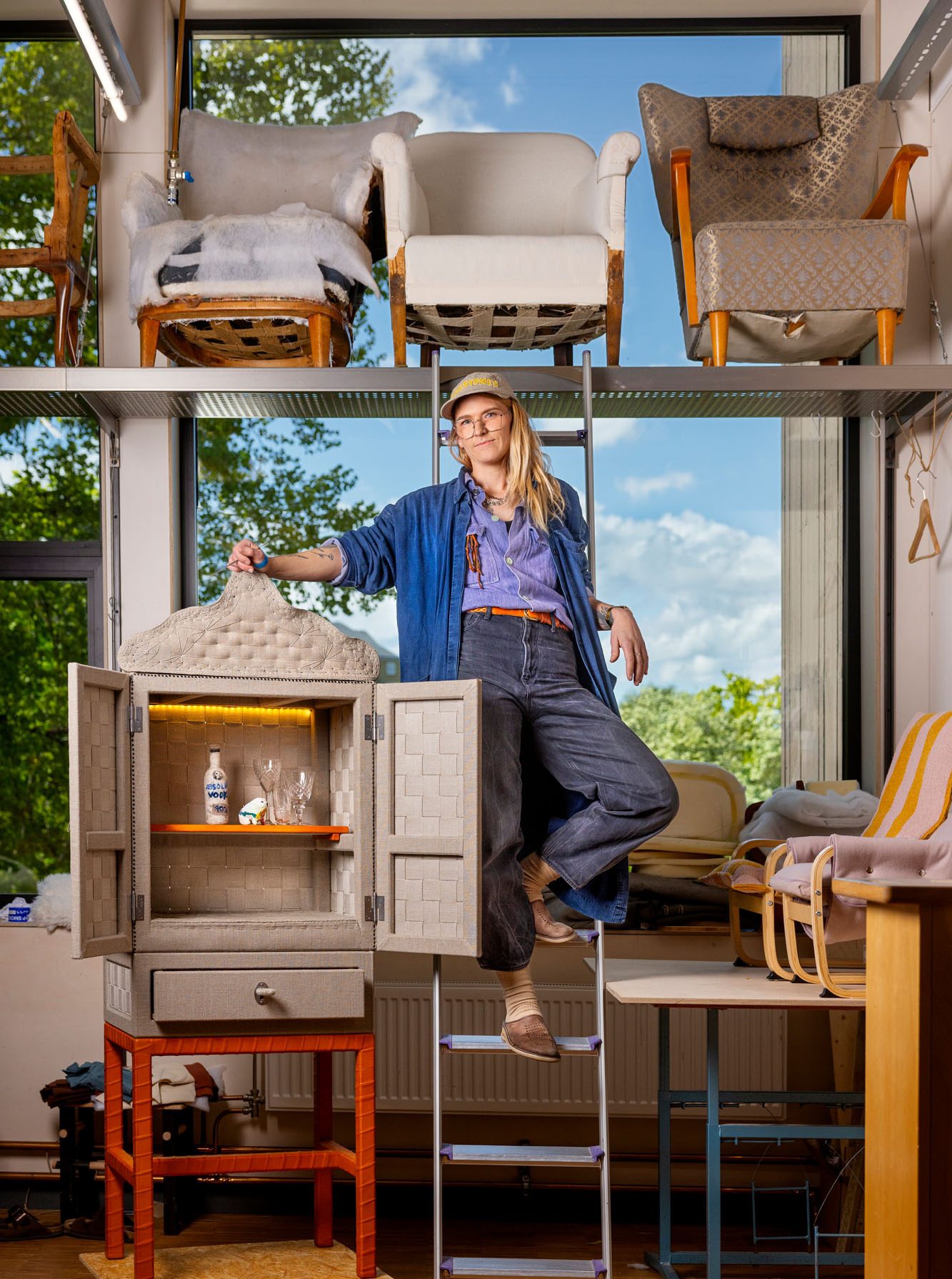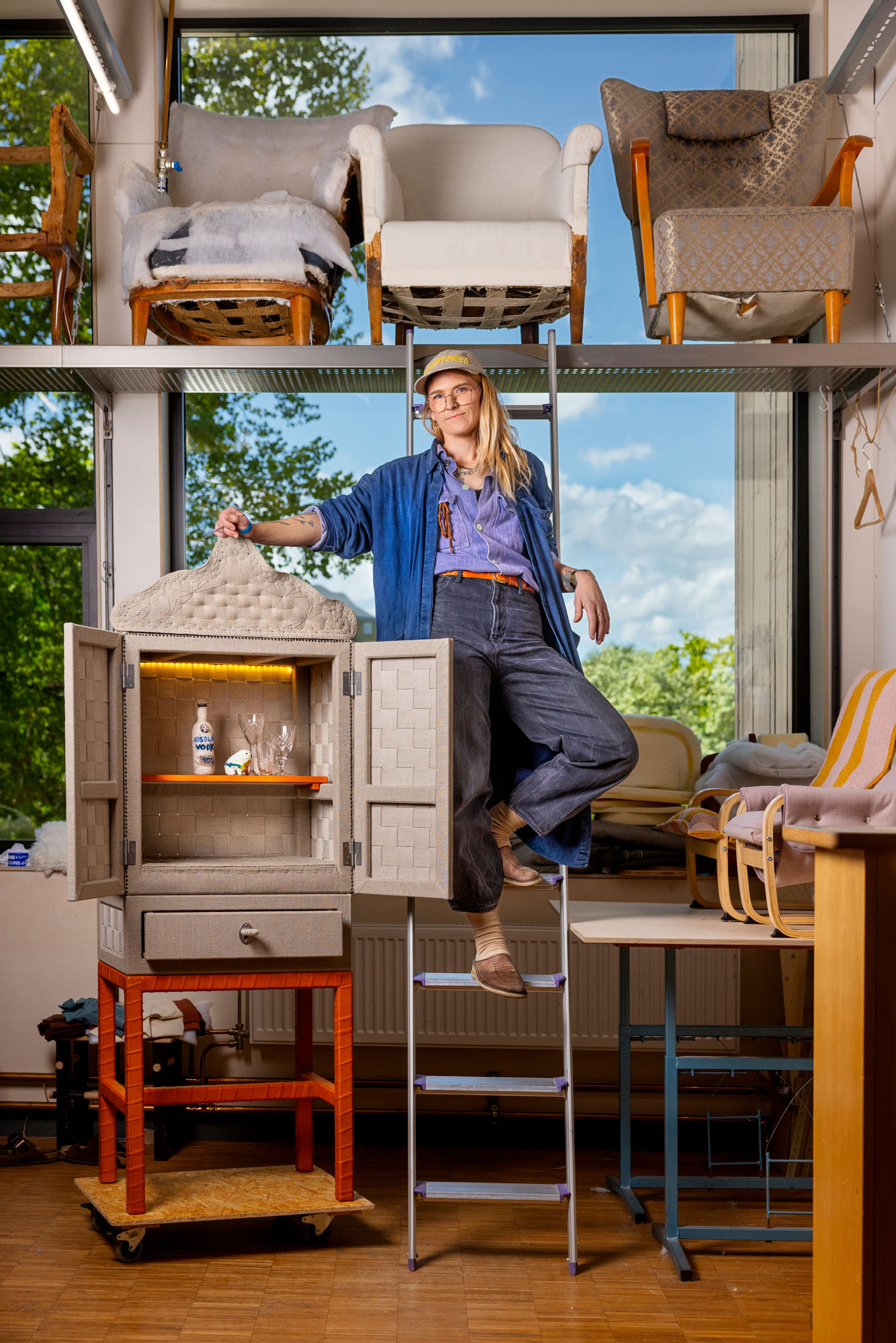 Skillnaden från vanliga skåp är att det här är gjort helt och hållet med tapetserarens tekniker och material. Jag vill att folk ska förstå hur fantastiska de är, vilka spännande sammansättningar som finns, alla vackra möten, hur smart det är.