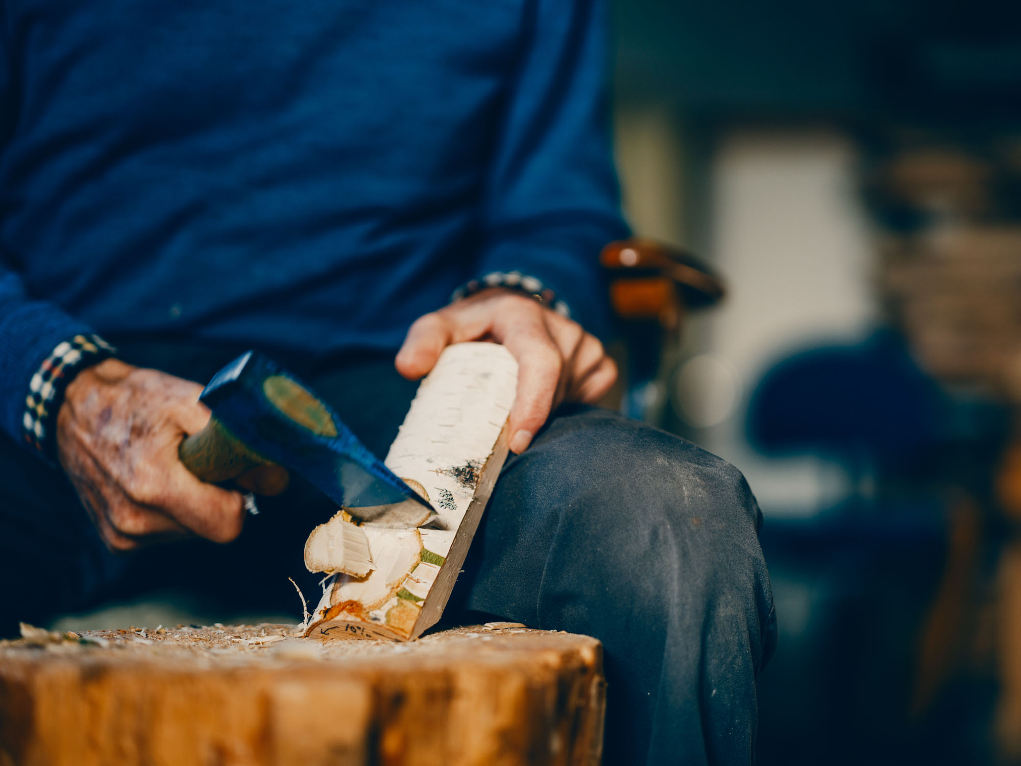 Med vassa verktyg och ett väl valt ämne är halva jobbet gjort, säger Knut Østgård. Själv väljer han nästan alltid björk. Så rak och kvistfri som möjligt.