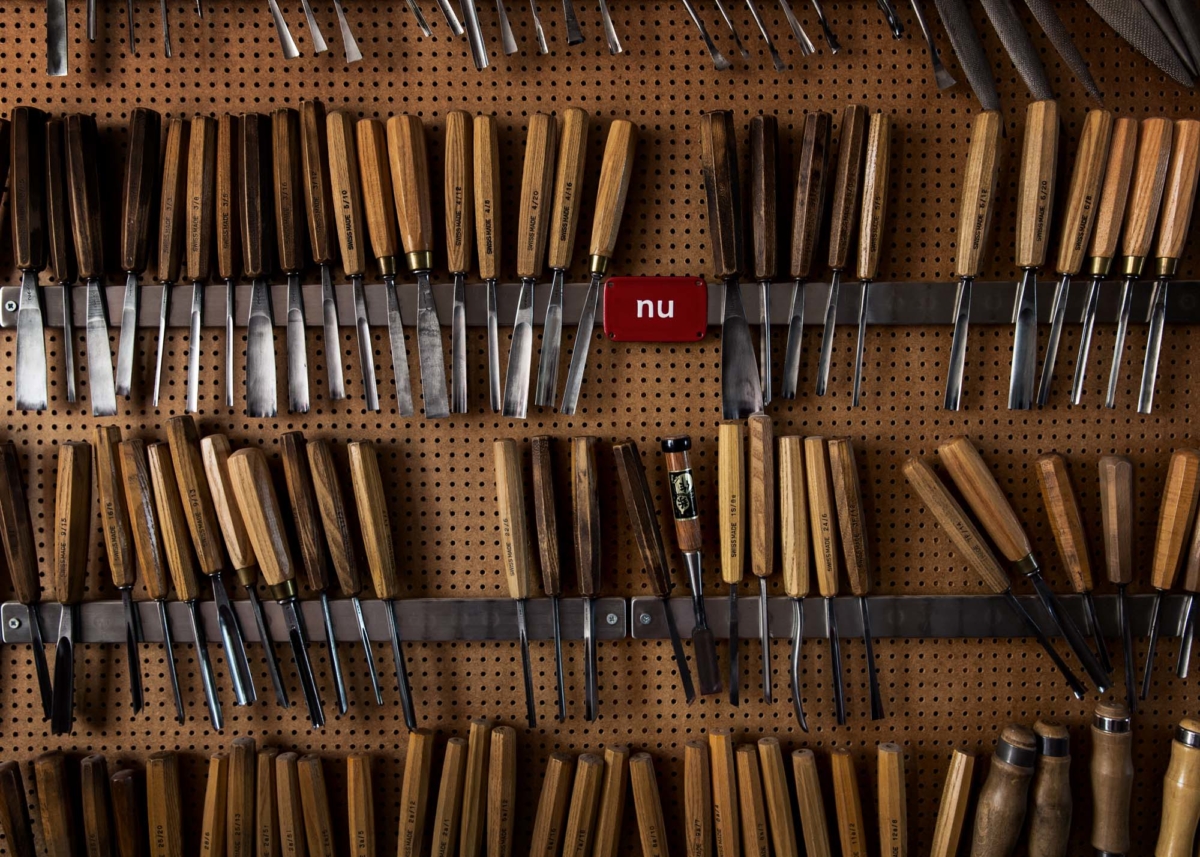 Somliga verkar tycka det, har han förstått. Han ställer sig vid det midjehöga arbetsbordet och plockar upp ett bildhuggarjärn. På väggen bakom honom hänger två hundra schweiziska specialjärn, numrerade efter slipning och skålning.