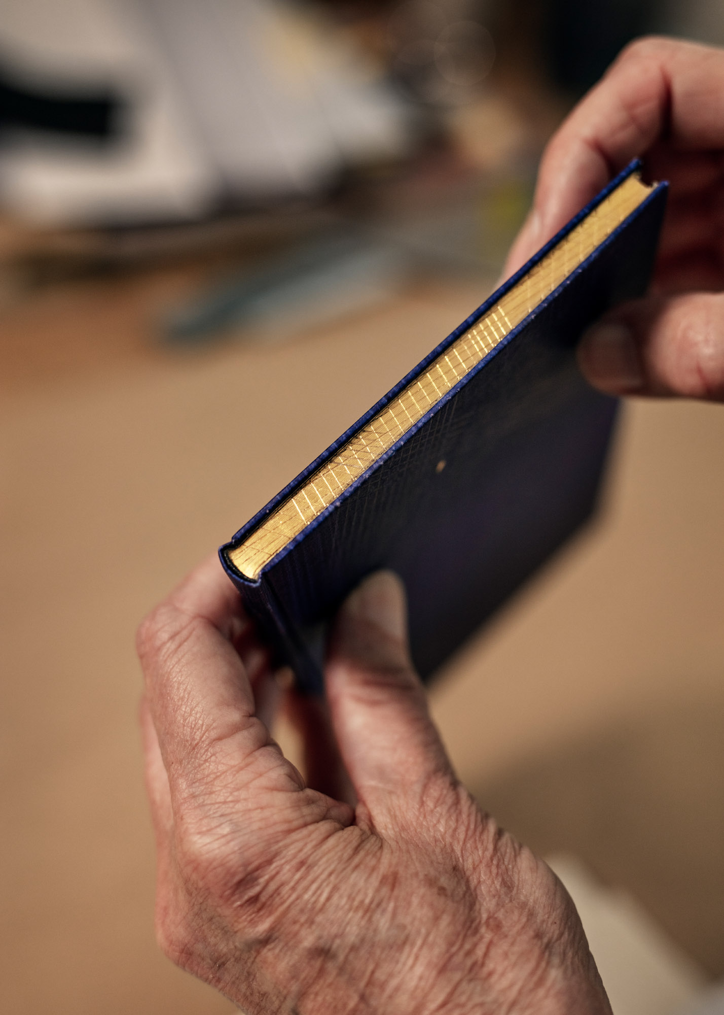 – Oavsett om kunden är insatt i bokhantverk eller inte är det en förtroendefråga. Man pratar igenom vad de önskar sig, om de har några favoritfärger, allt möjligt. Ofta utbildar man kunderna medan man samarbetar med dem, och det är en av de roligaste sakerna med jobbet.